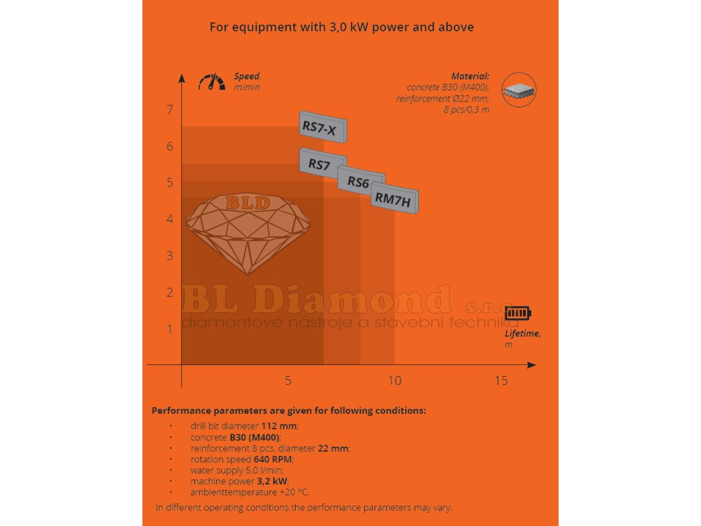Diamantové jádrové korunky DLD RS6 jsou diamantové  korunky určené pro jádrové vrtání s vodním výplachem na beton, armovaný beton.