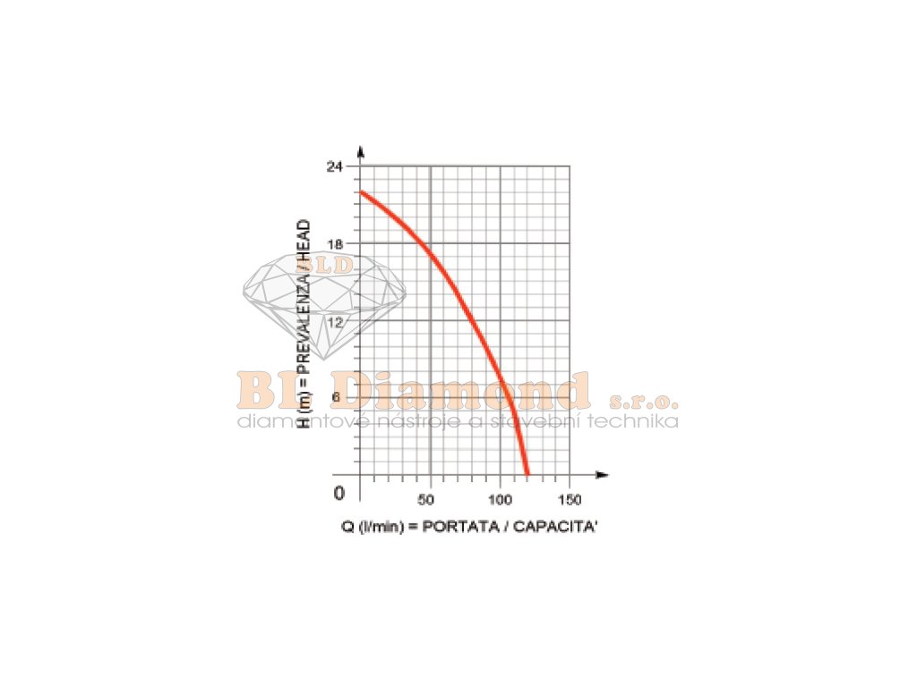 Maximální čerpací výkon: 110 litrů /min. při výtlaku 1m nebo 25 litrů / min. při výtlaku 20m