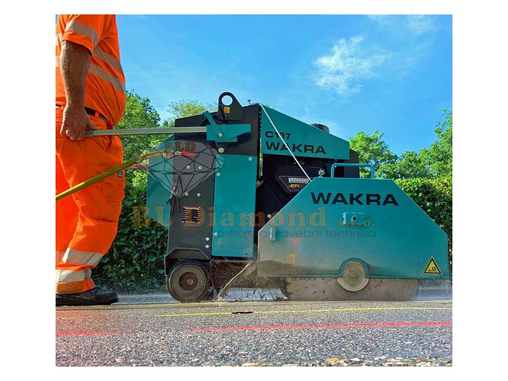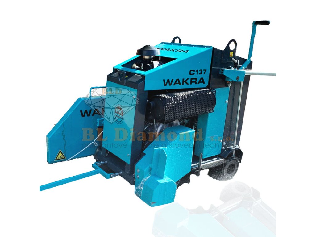 Uchycení řezného kotouče o průměru až 800mm je volitelné na pravé nebo levé straně. Stabilní podvozek s přesným ručním zářezem je prováděn pomocí závitové hřídele. Jde o výtečnou a nenáročnou pilu, která je vybavena oblíbeným 1 válcovým benzinovým motorem Honda o výkonu 9,6kW, ruční brzdou pojezdu, ukazatelem hloubky řezu s možností aretace a připojením vody.