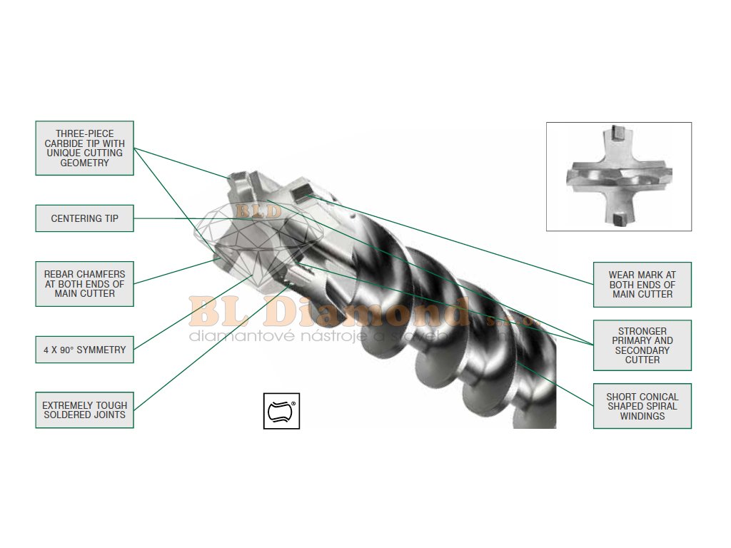 - Vrtáky použitelné pro všechny typy středních a velkých elektropneumatických kladiv s váhou kladiva od 5kg